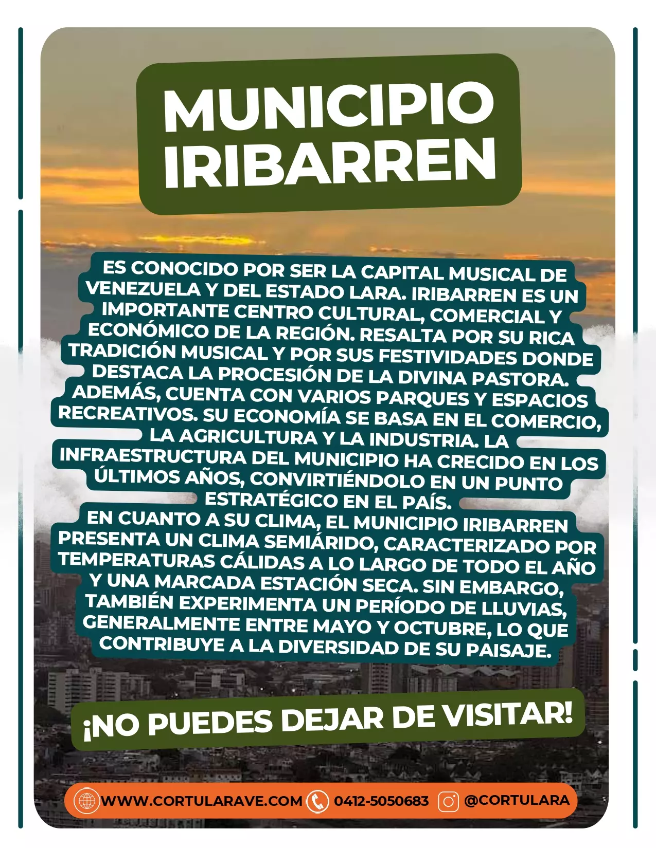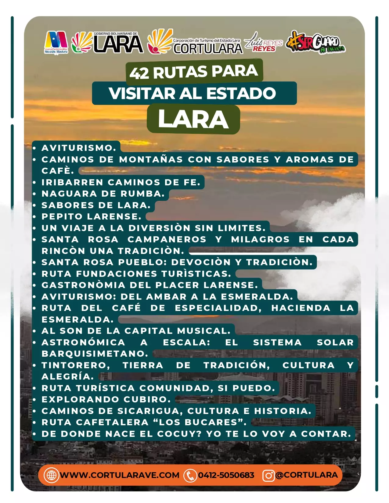 Conoce al estado Lara acompañado de Cortulara; Quien te brindará una experiencia entre lo natural, cultural, religioso y la historia de nuestro estado Lara.
